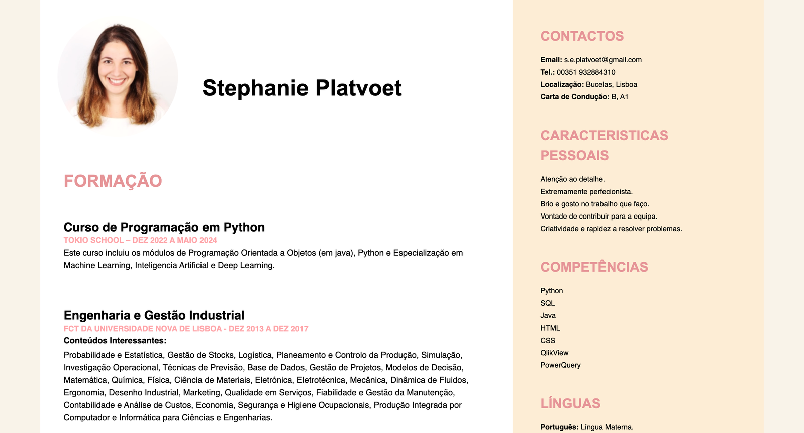 Aqui está o meu Curriculum Vitae em Português